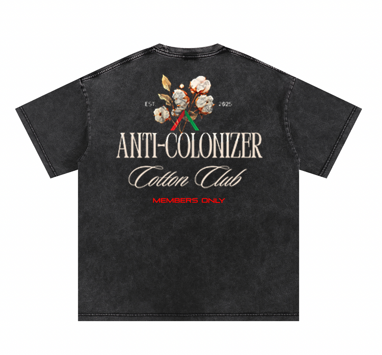 TO REDUCE THE AMOUNT OF WASTE THAT IS GENERATED BY FAST FASHION, BULK INVENTORY ORDERS AND TO EFFICIENTLY USE THE LIMITED COTTON GROWN FROM THESE BLACK FARMERS, PRODUCTS ARE PRINTED, LABELED, AND STITCHED AFTER ORDERING.