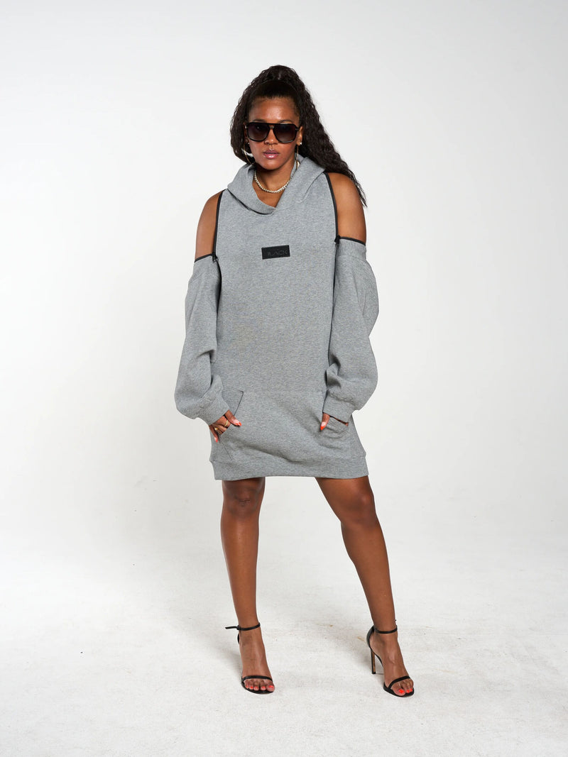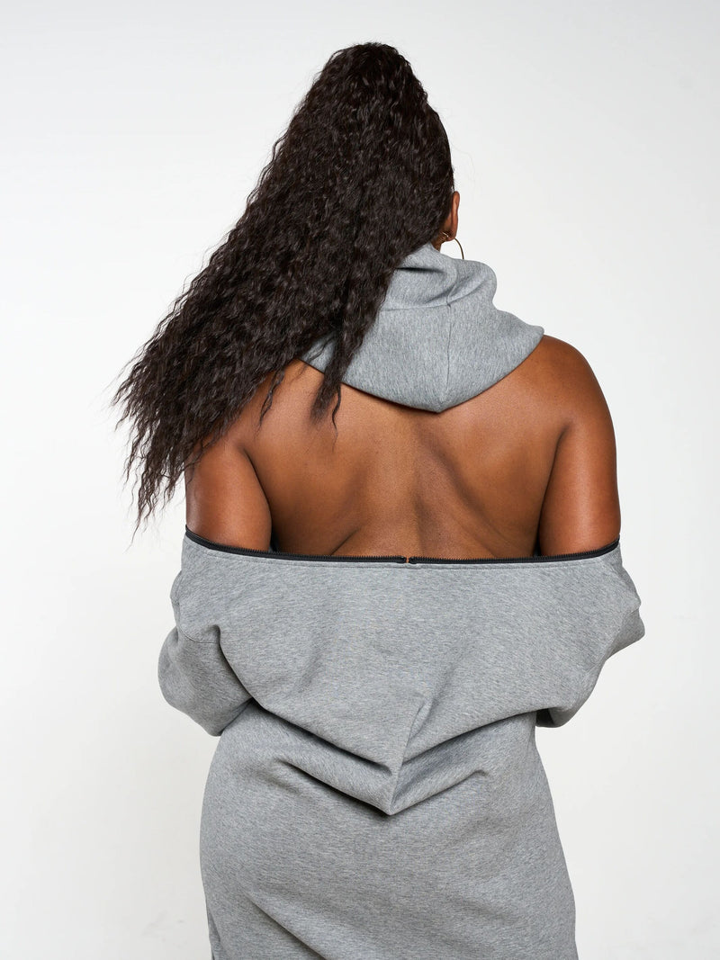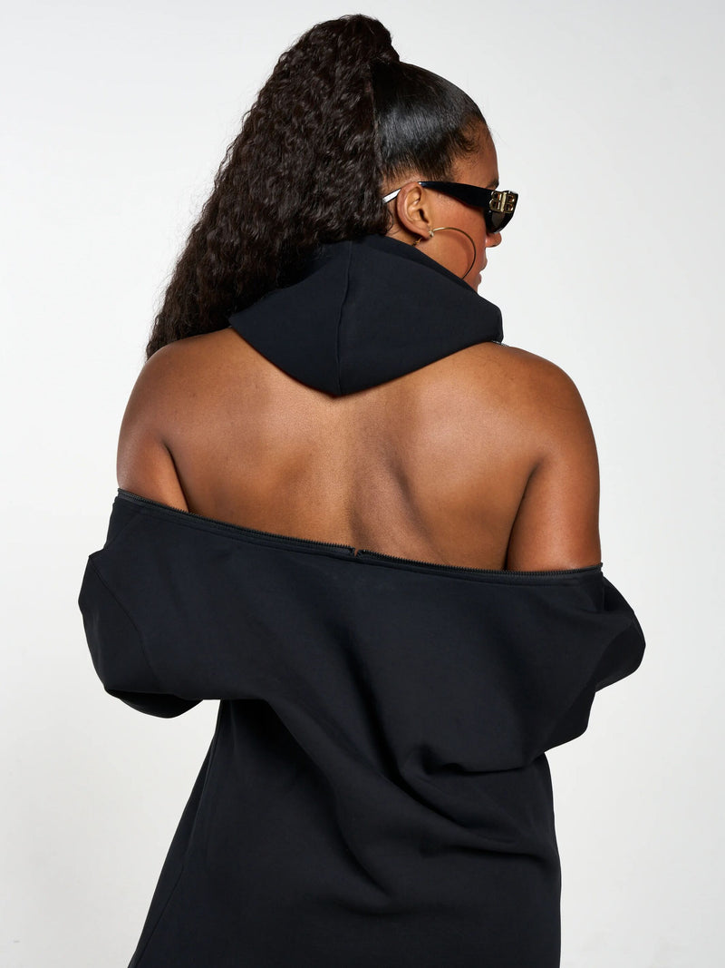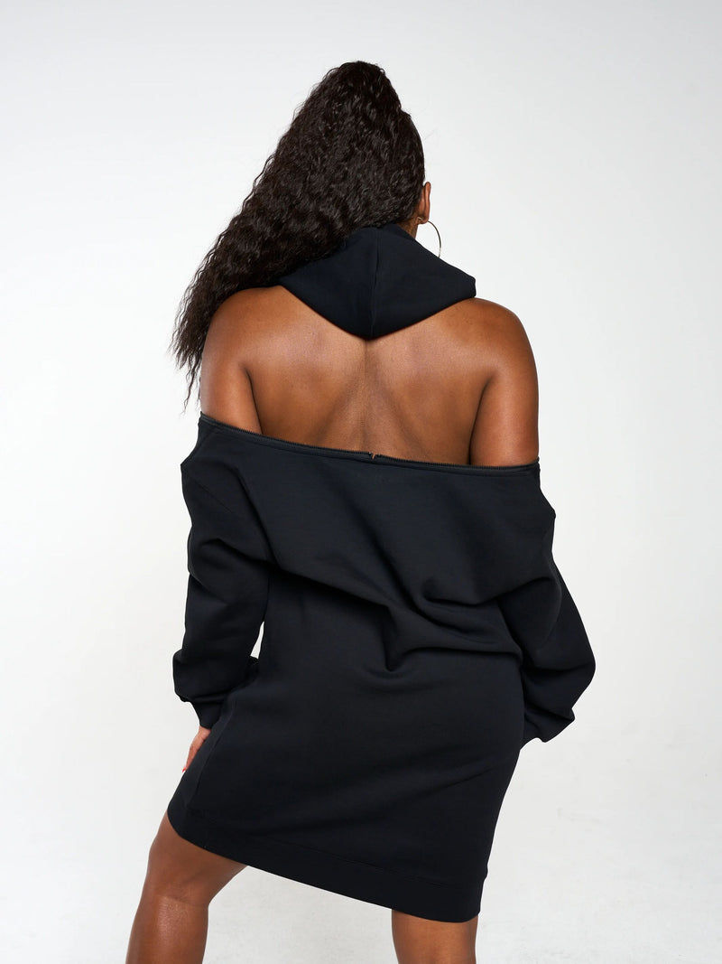 Zippers on Shoulder to Wear As A Off The Shoulder/ Backless Hoodie Dress