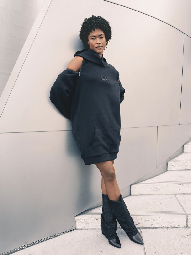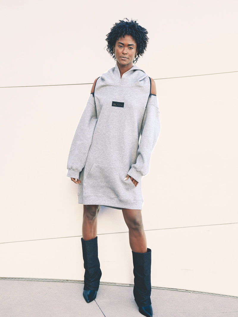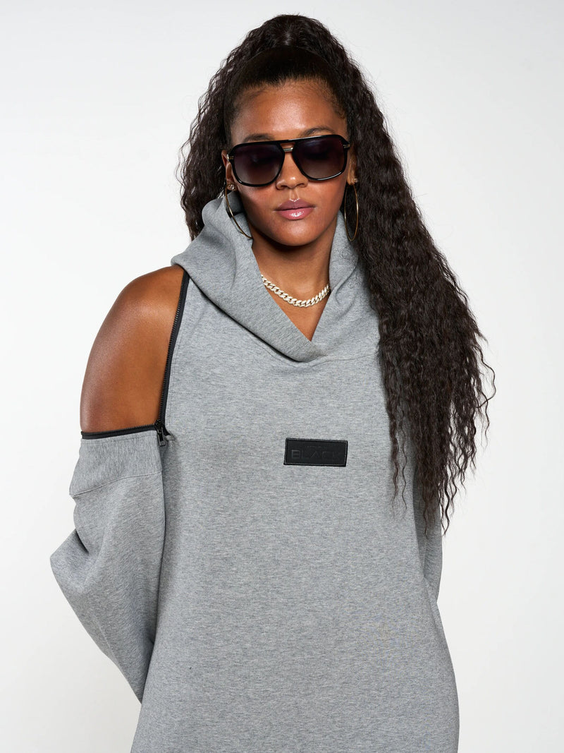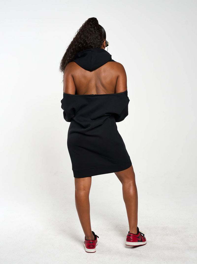 Zippers on Shoulder to Wear As A Off The Shoulder/ Backless Hoodie Dress