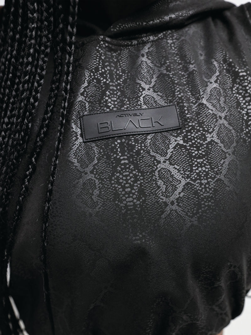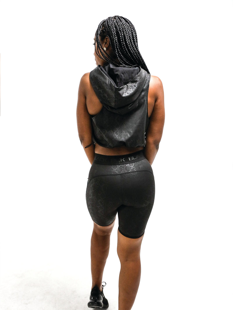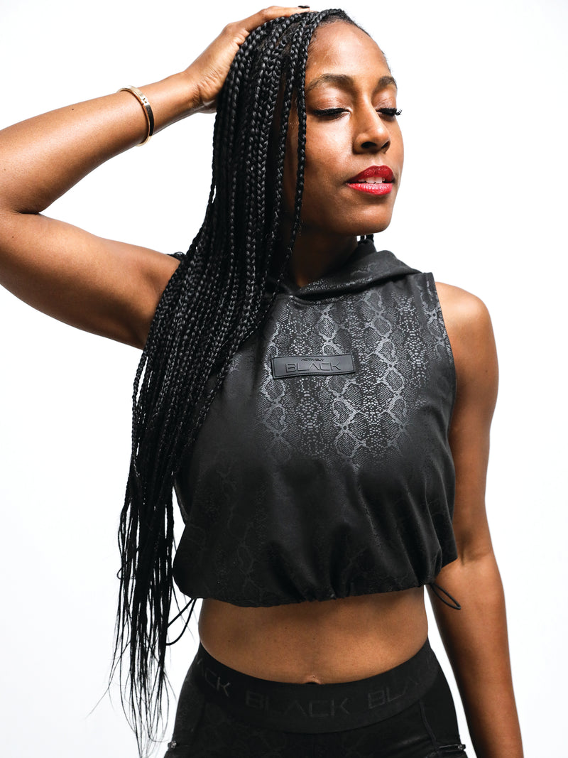 • Women's Sleeveless Black Python Crop Hoodie
